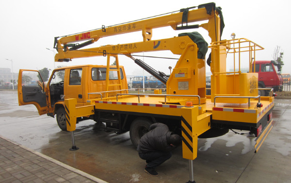 高空作業(yè)車采用國產(chǎn)、進口換向閥及液壓油缸,換向平衡,操作靈活方便,支腿與工作臂互鎖,支腿與工作臂互鎖,防止誤操作過位。對高空作業(yè)車有特殊要求的用戶請致電本公司,我們可以為用戶定單設(shè)計、改裝。可加裝電控系統(tǒng)。 高空作業(yè)車采用原裝底盤,平頭 ,可容納更過的作業(yè)人員。性能穩(wěn)定可靠,主要用于電氣線路檢修、高空作業(yè)清洗、樹木剪枝等高空作業(yè)使用。